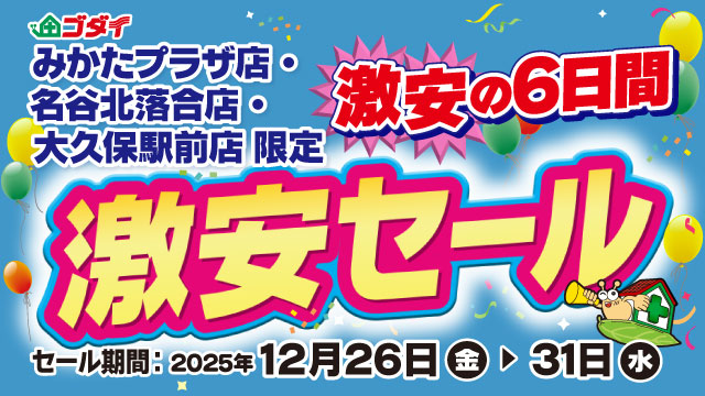 【12/26~12/31】の期間、みかたプラザ店・名谷北落合店・大久保駅前店限定の超お得な特別セールを開催!皆さま、ぜひお越しください♪