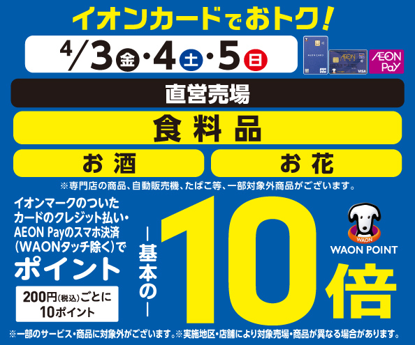 食料品・お酒・お花の各売場でWAON POINT基本の10倍!