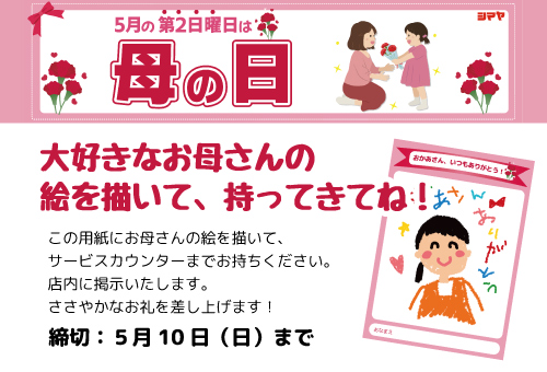 <5/10(日)は母の日です>お母さんの似顔絵募集中!
