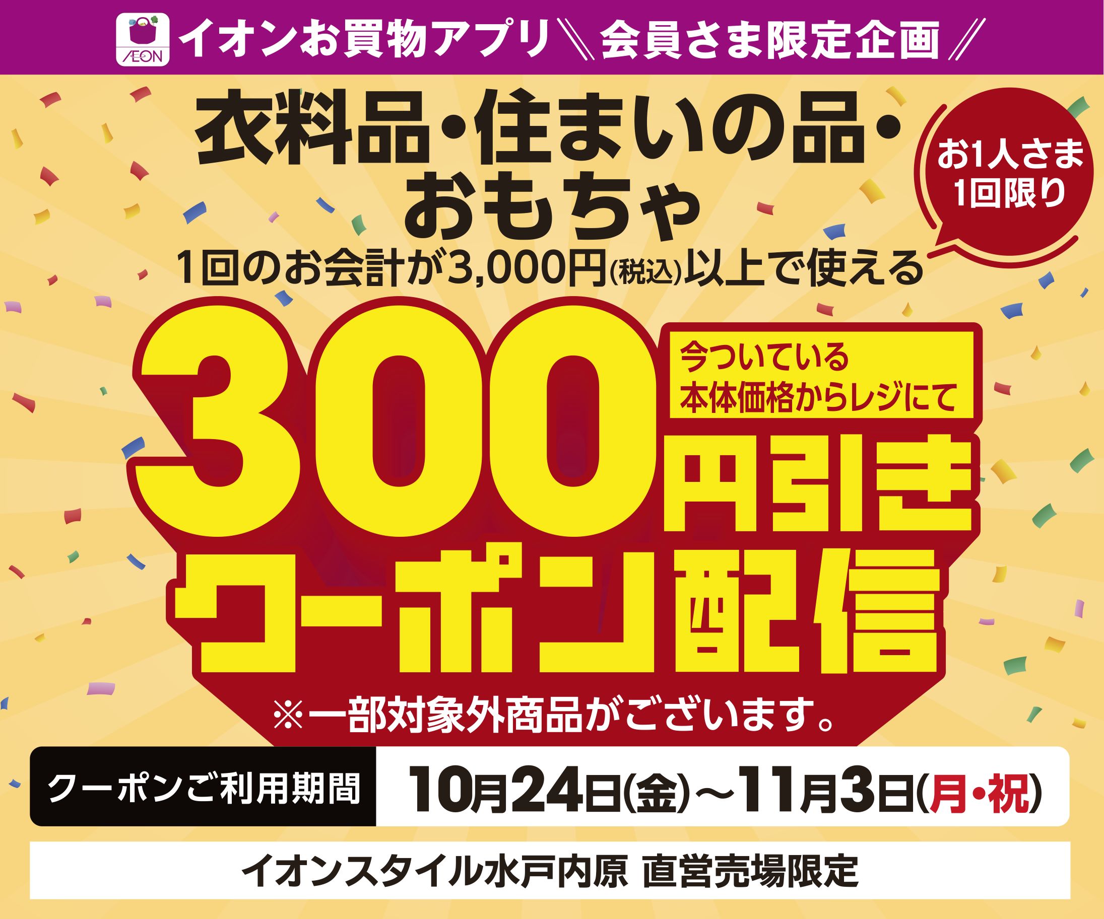 【イオンスタイル水戸内原限定】300円引きアプリクーポン配信!