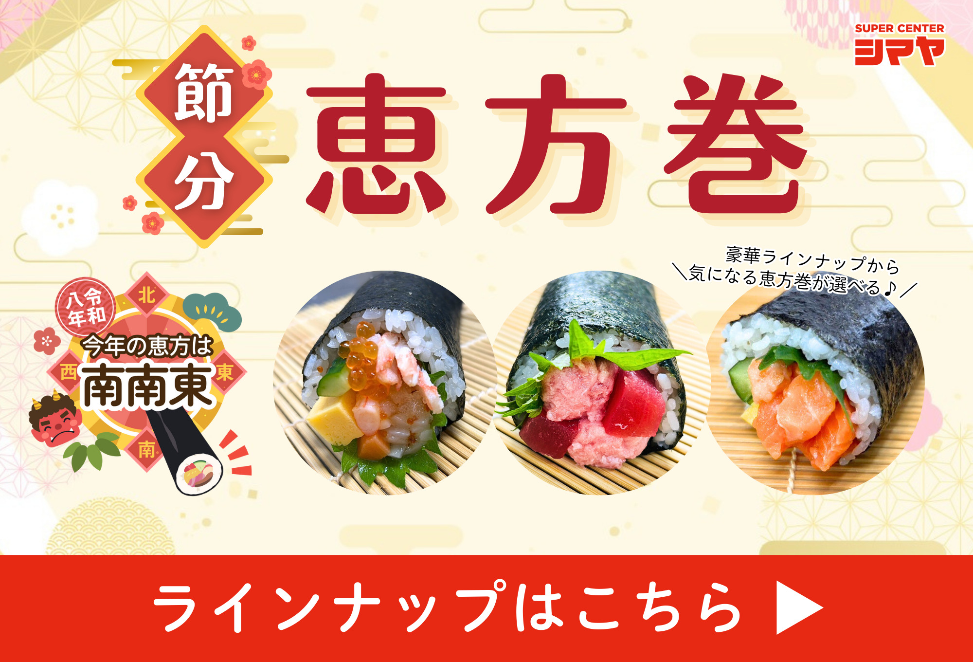 2/3(火)は節分!シマヤの恵方巻で福を呼び込もう!