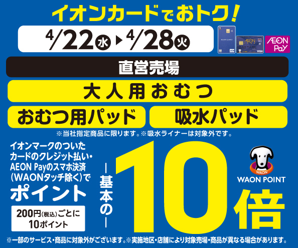 大人用おむつの各売場でWAON POINT基本の10倍!