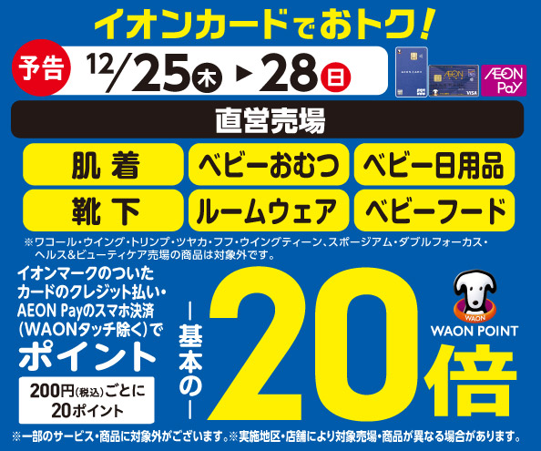 【予告】肌着・ベビーおむつの各売場でWAON POINT基本の20倍!