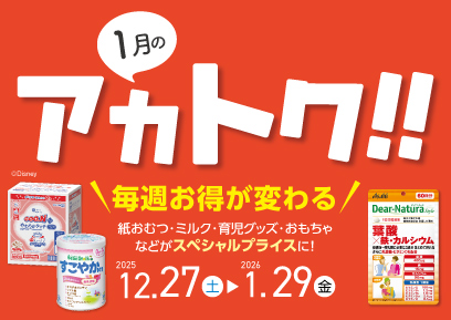 今月のアカトク!!紙おむつ・粉ミルク・おもちゃ・育児雑貨など、週替わりでお買得!スペシャルプライスのアカトクを要チェック!いつも使っているあの商品をお得にゲットしよう♪詳しくはこちら:https://chirashi.akachan.jp/chirashi/special/akatoku/