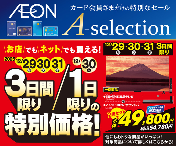 イオンカードお支払い限定 Aセレクション 3日間/1日限りの特別価格