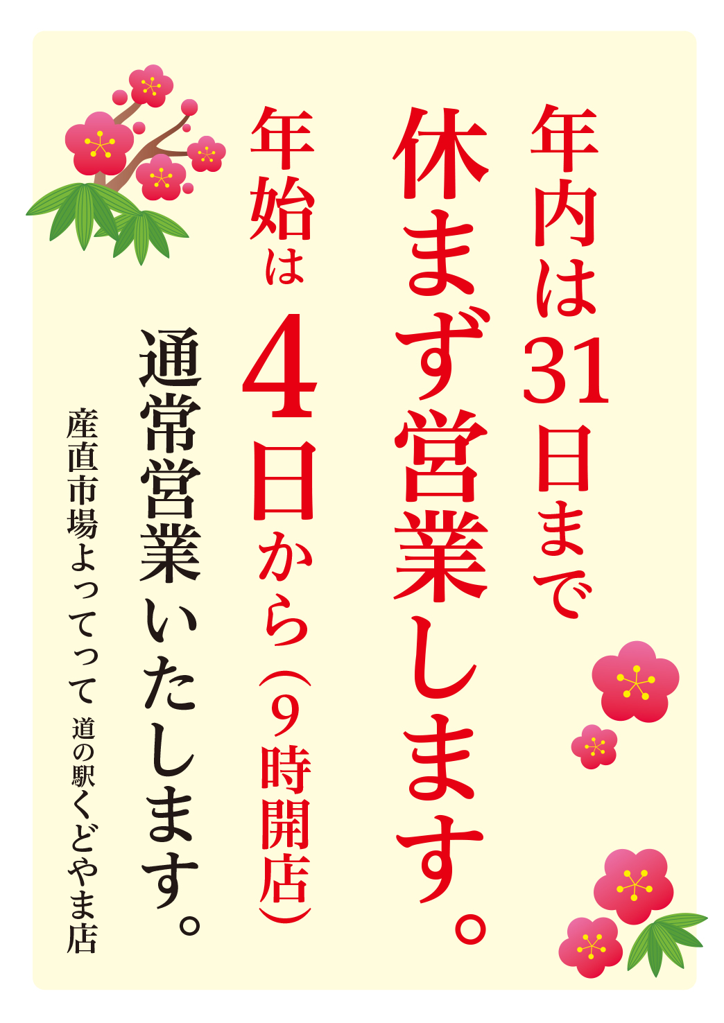 年始は1月4日(日)から通常営業いたします。