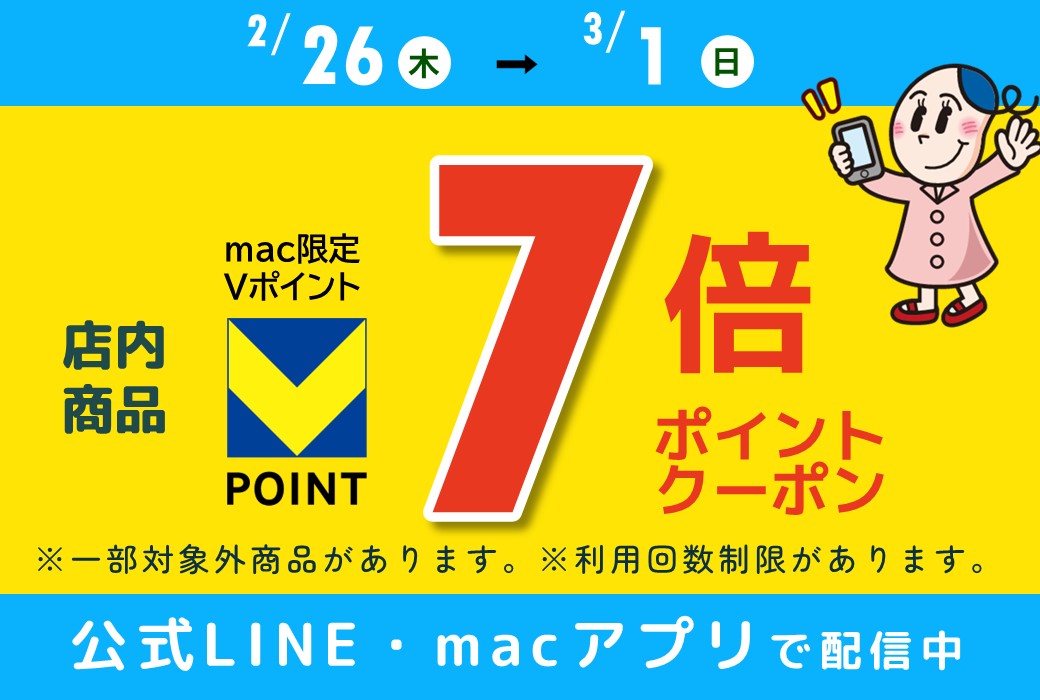 ※付与ポイントはmac限定Vポイントです。