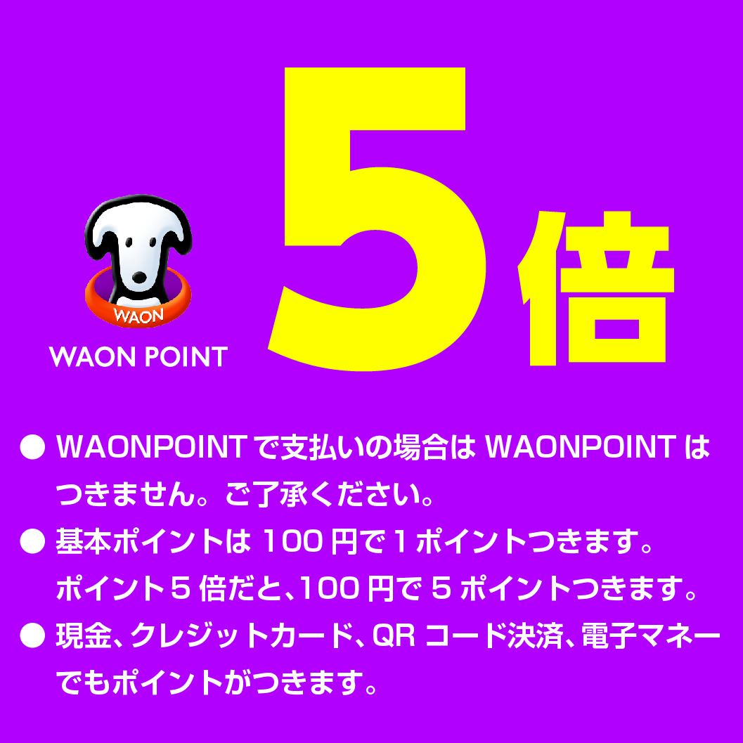 本日だけWAONポイント5倍!