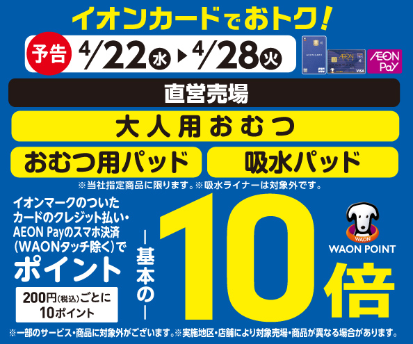 【予告】大人用おむつの各売場でWAON POINT基本の10倍!