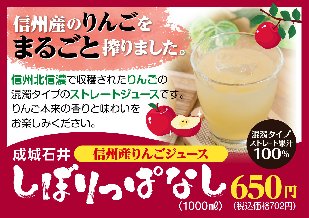 信州北信濃で収穫された美味しい「りんご」が丸ごと、100%ストレートジュースになりました!