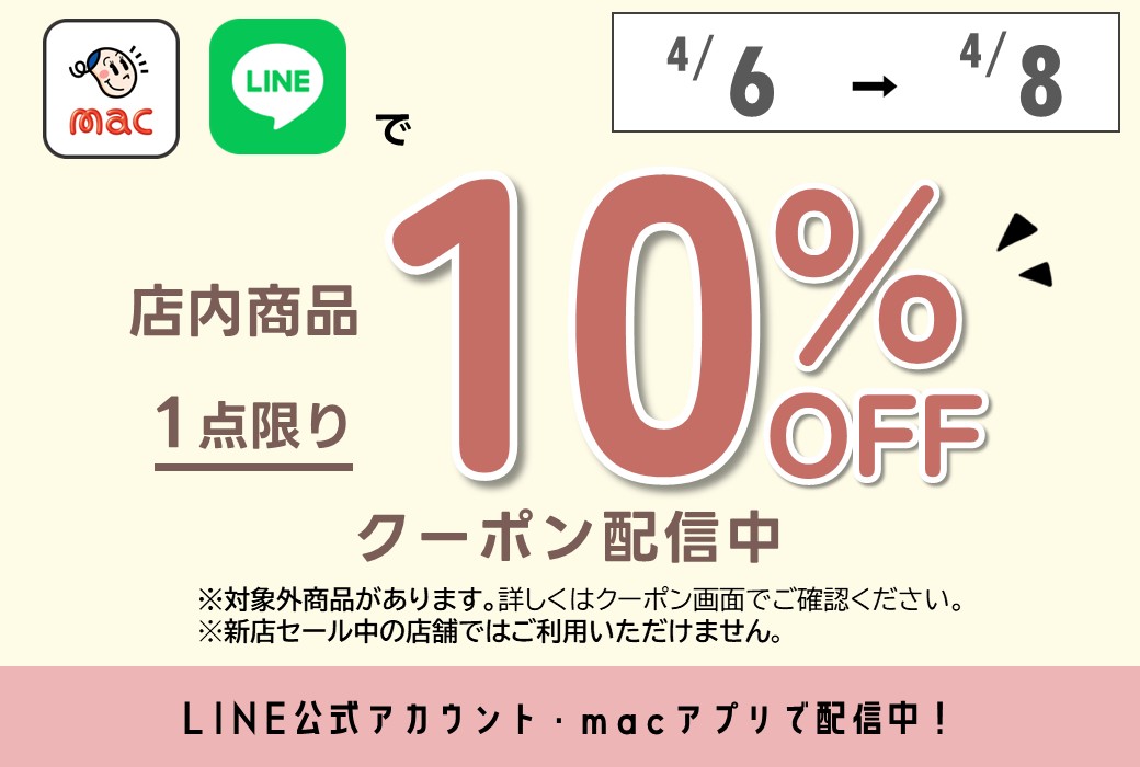 【4/6~4/8】1品10%オフクーポンをLINE・アプリで配信!