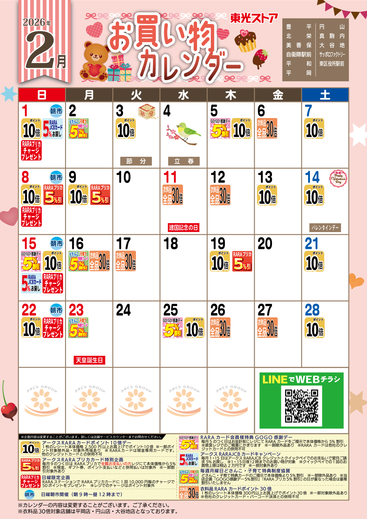 2月お買物カレンダー