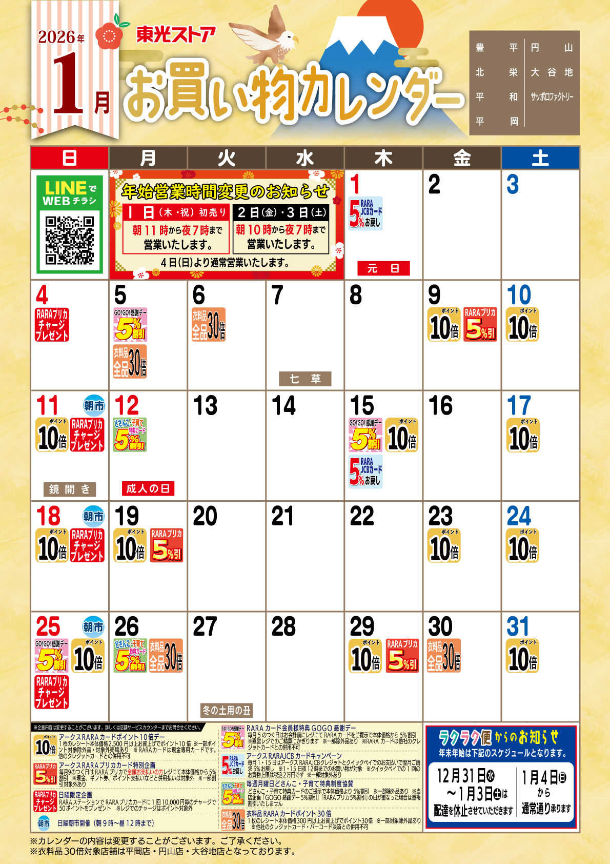 1月お買物カレンダー