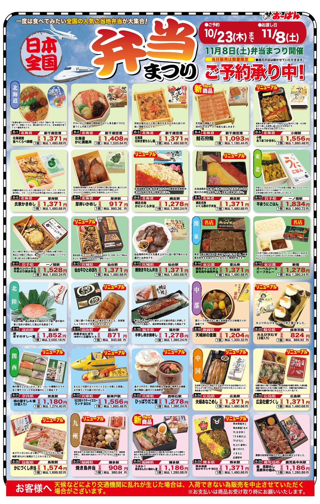 11月8日(土)は、全国有名お弁当まつりを開催いたします!