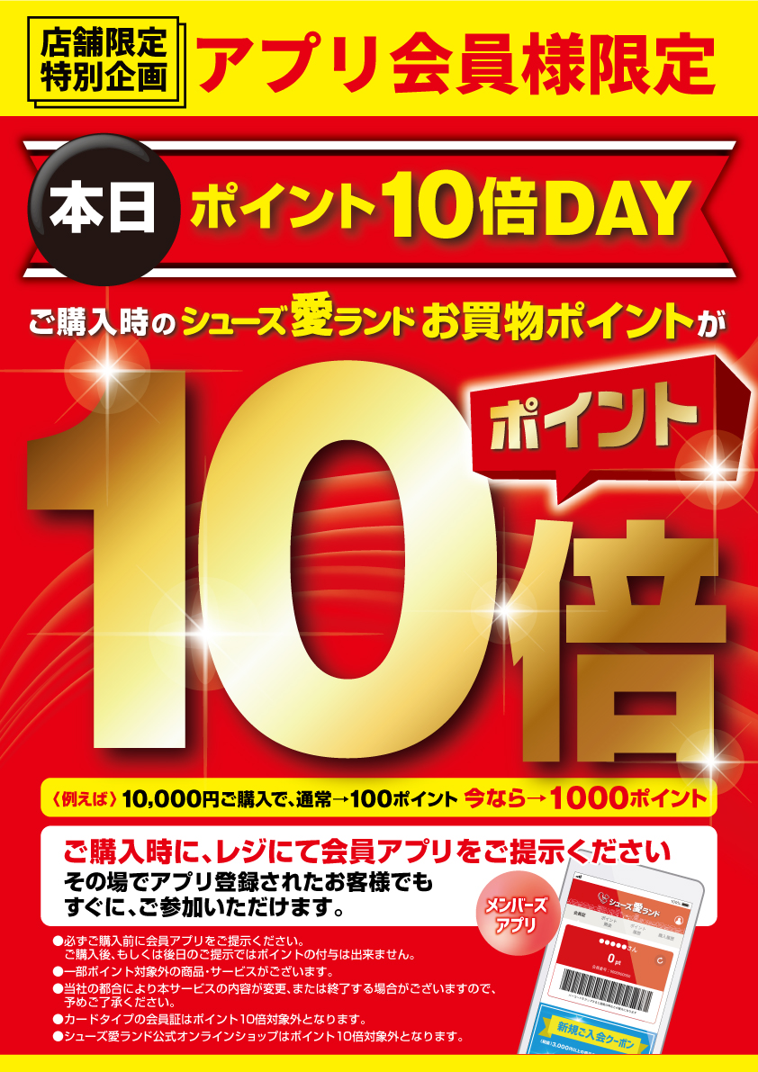 ご購入時に シューズ愛ランドメンバーズアプリ をご提示ください。
