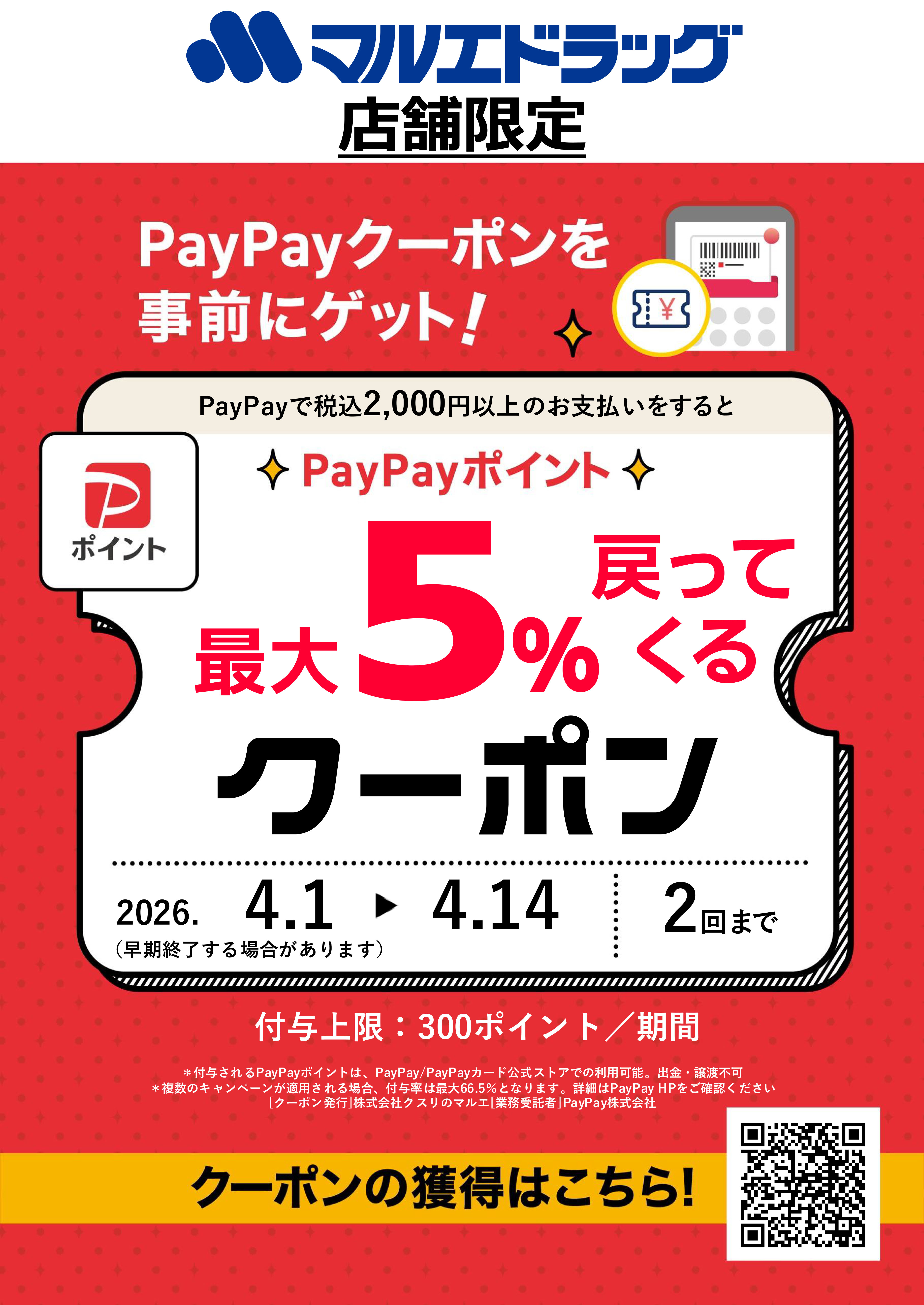 4.1~4.14 店舗限定PayPayクーポン!!