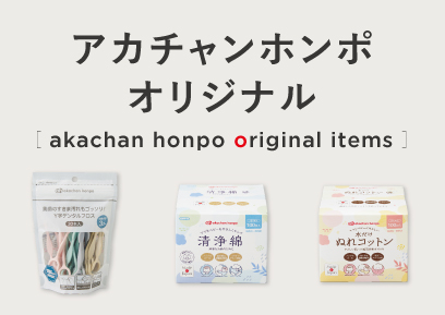 アカチャンホンポには素材や機能に、赤ちゃん・ママ・パパへのやさしさと思いやりをギュッと詰め込んだオリジナルアイテムがたくさんあります。