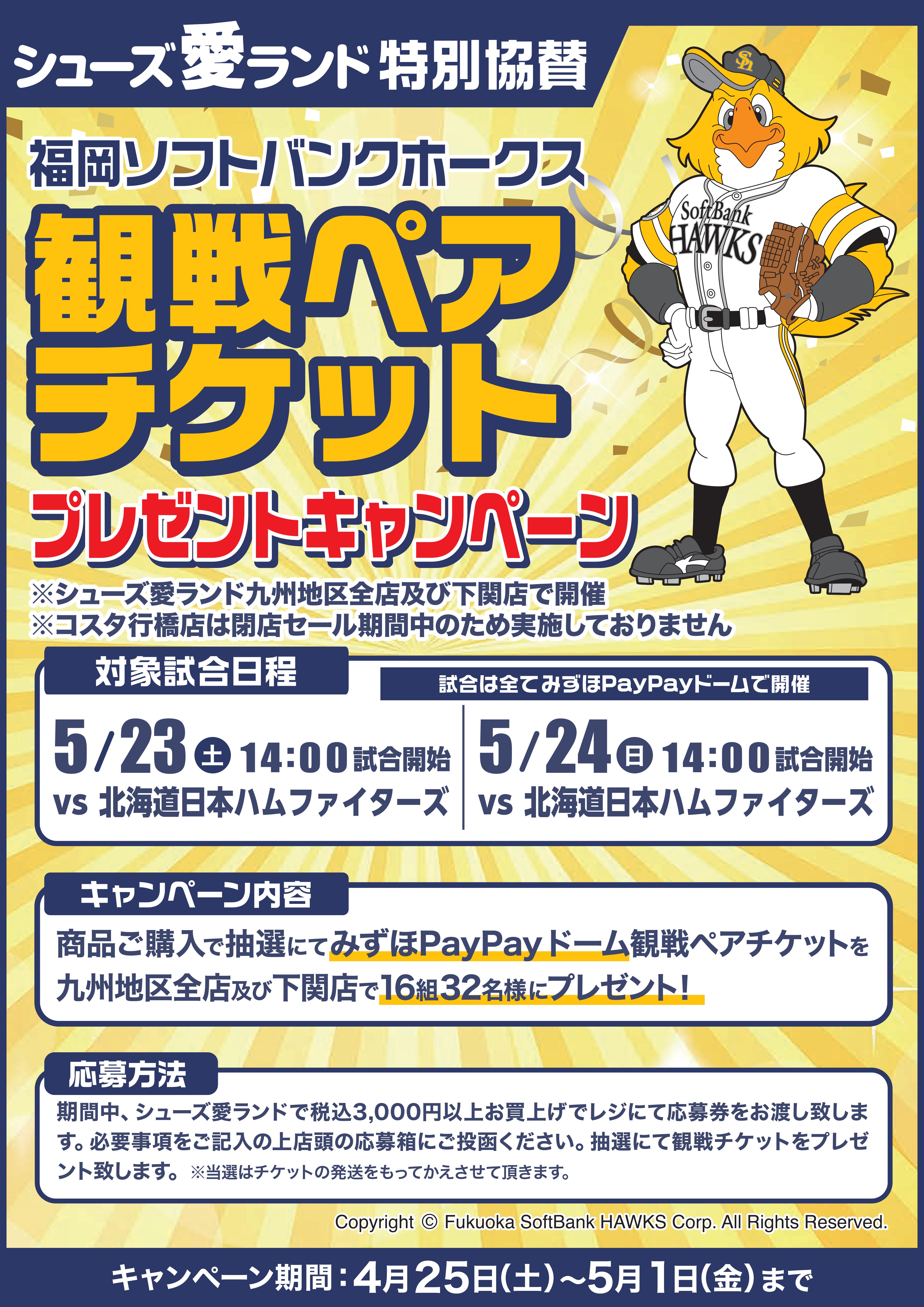【店舗限定】福岡ソフトバンクホークスチケットプレゼントキャンペーン