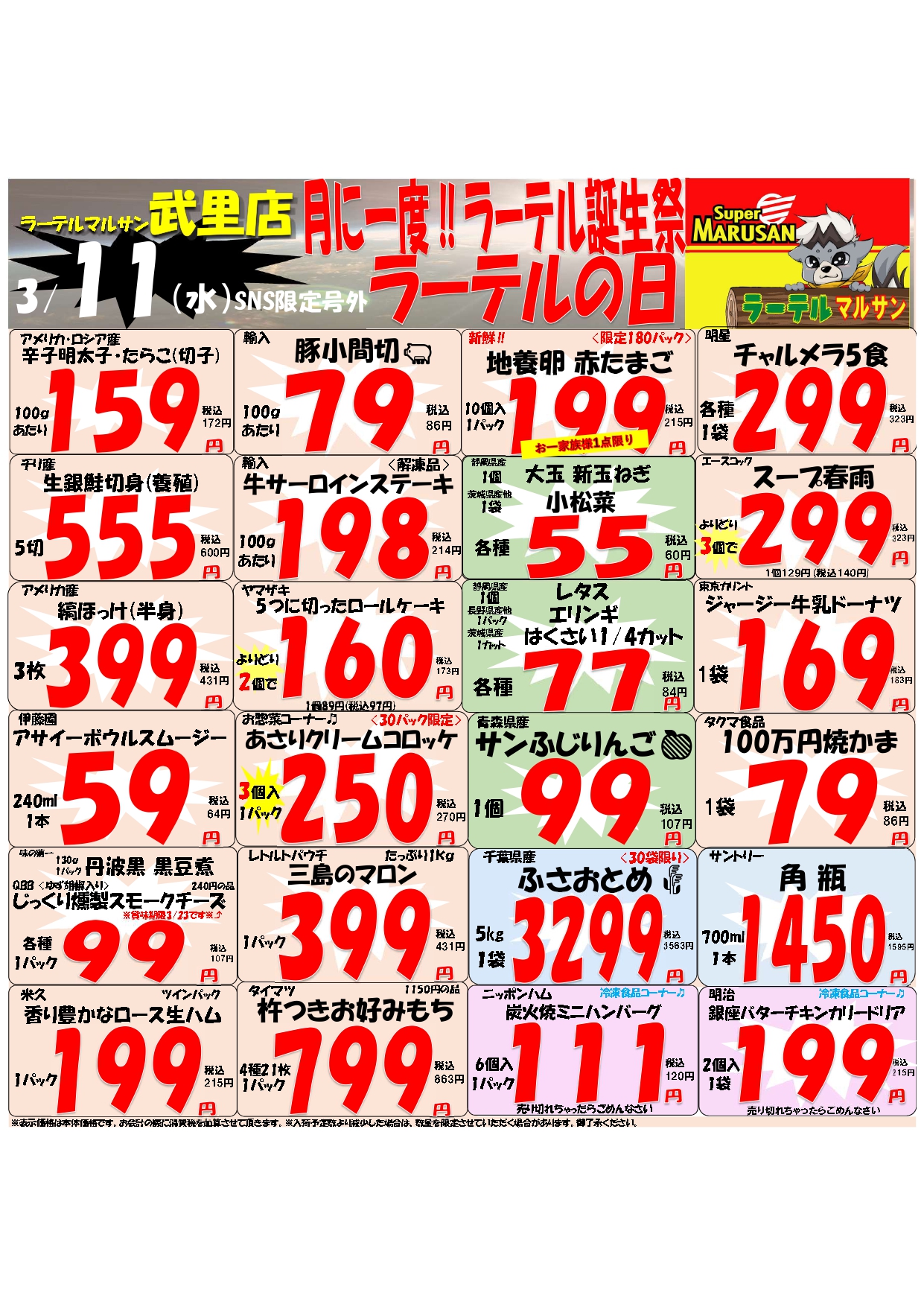 武里店 毎月11日限定 ||◤ラーテル号外◢||のお知らせ!!