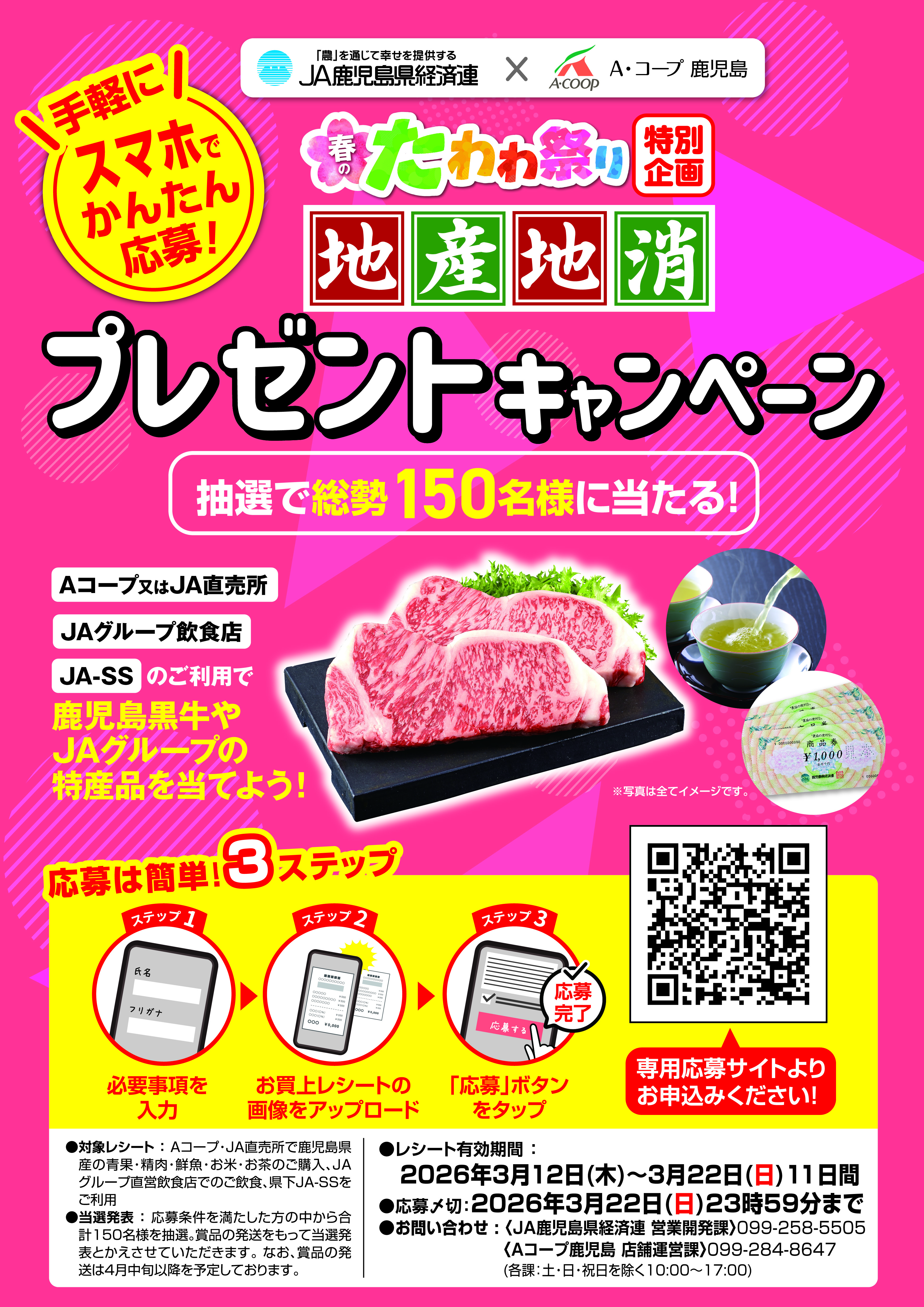 スマホで簡単応募!150名様に抽選で当たる、地産地消プレゼントキャンペーン!