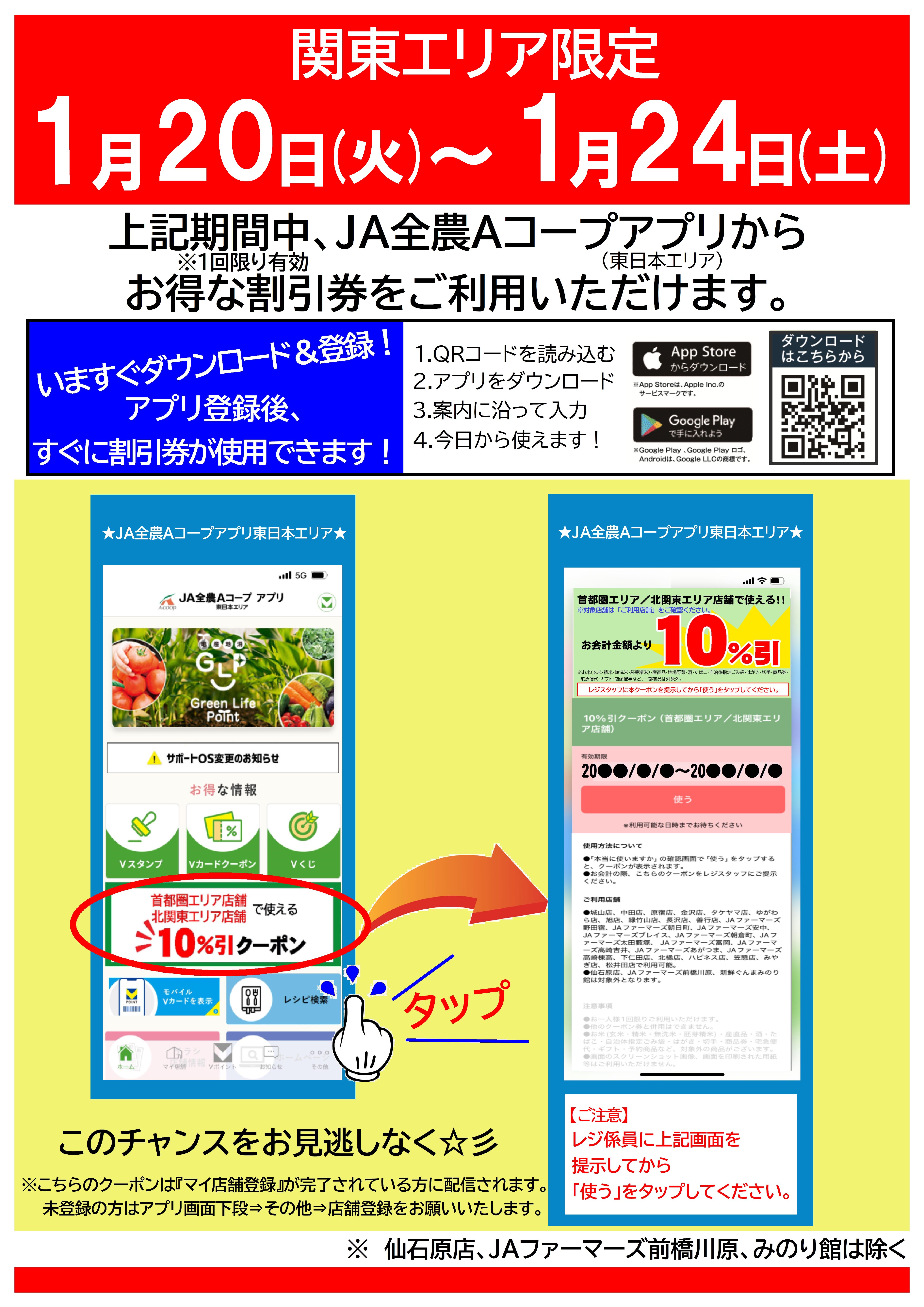 1/20(火)~24(土)の期間中アプリからお得な