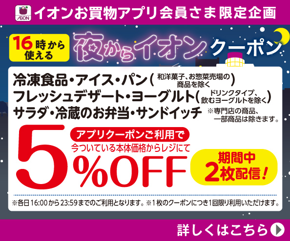 【イオンお買物アプリ】16時から使える夜からイオンクーポン