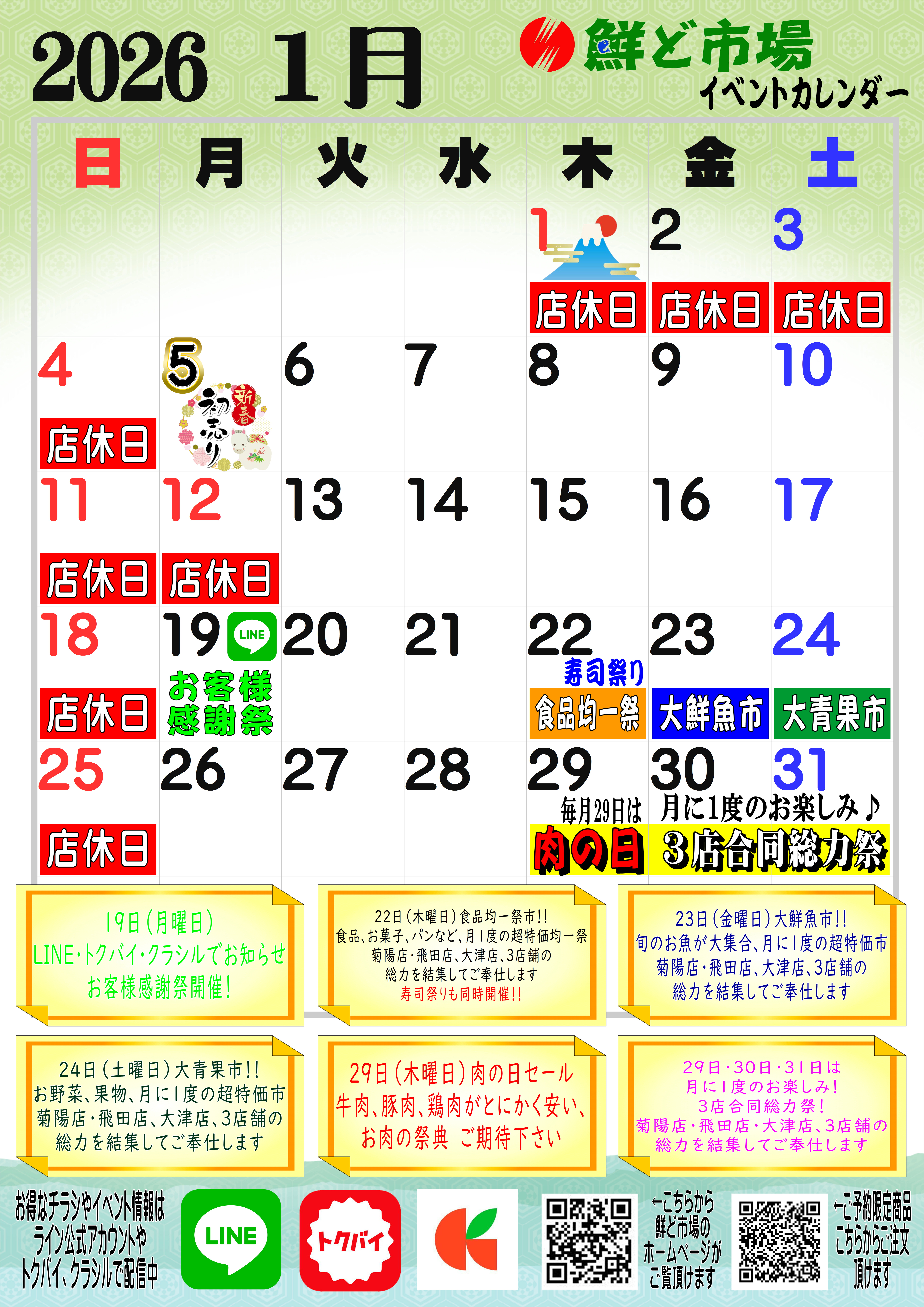 1月営業カレンダー