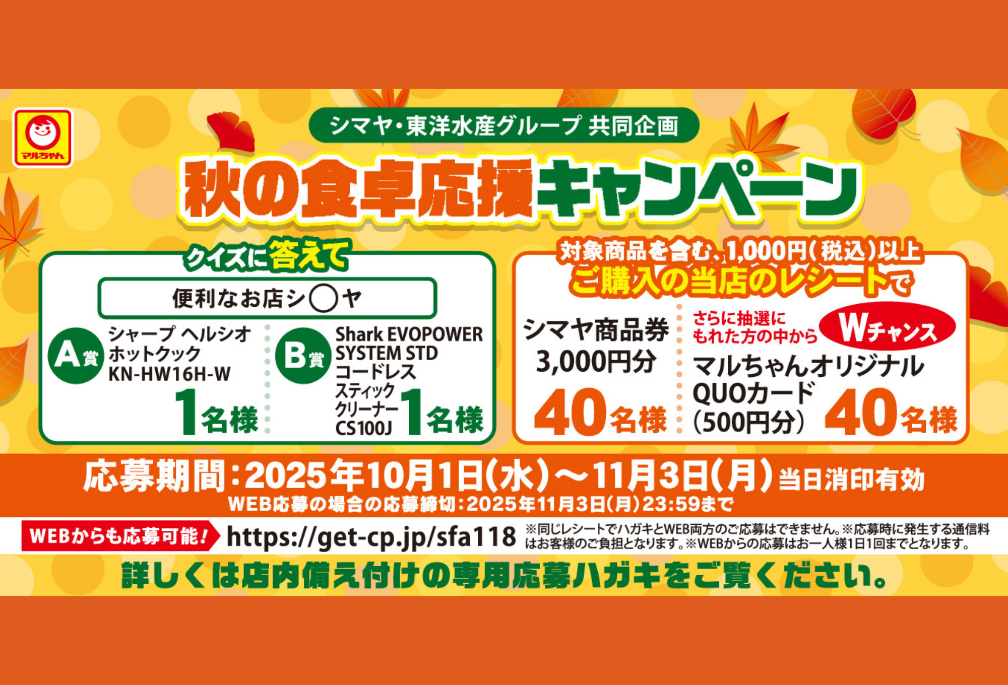 シマヤ・東洋水産グループ共同企画【秋の食卓応援キャンペーン】開催中!