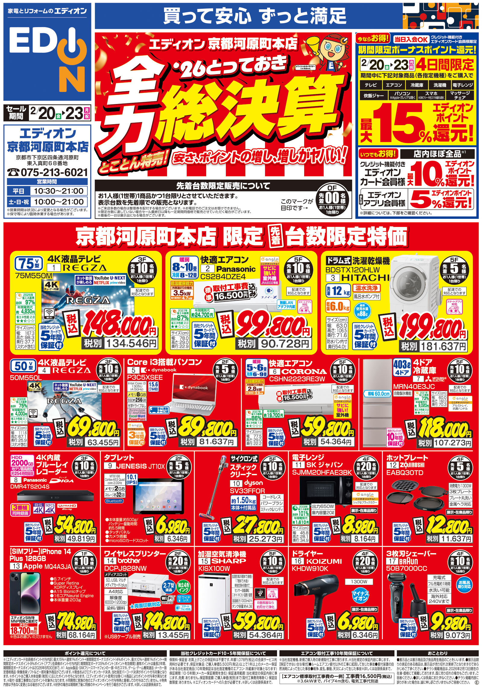 営業時間 営業時間はエディオンの店舗情報ページにて最新情報をご確...