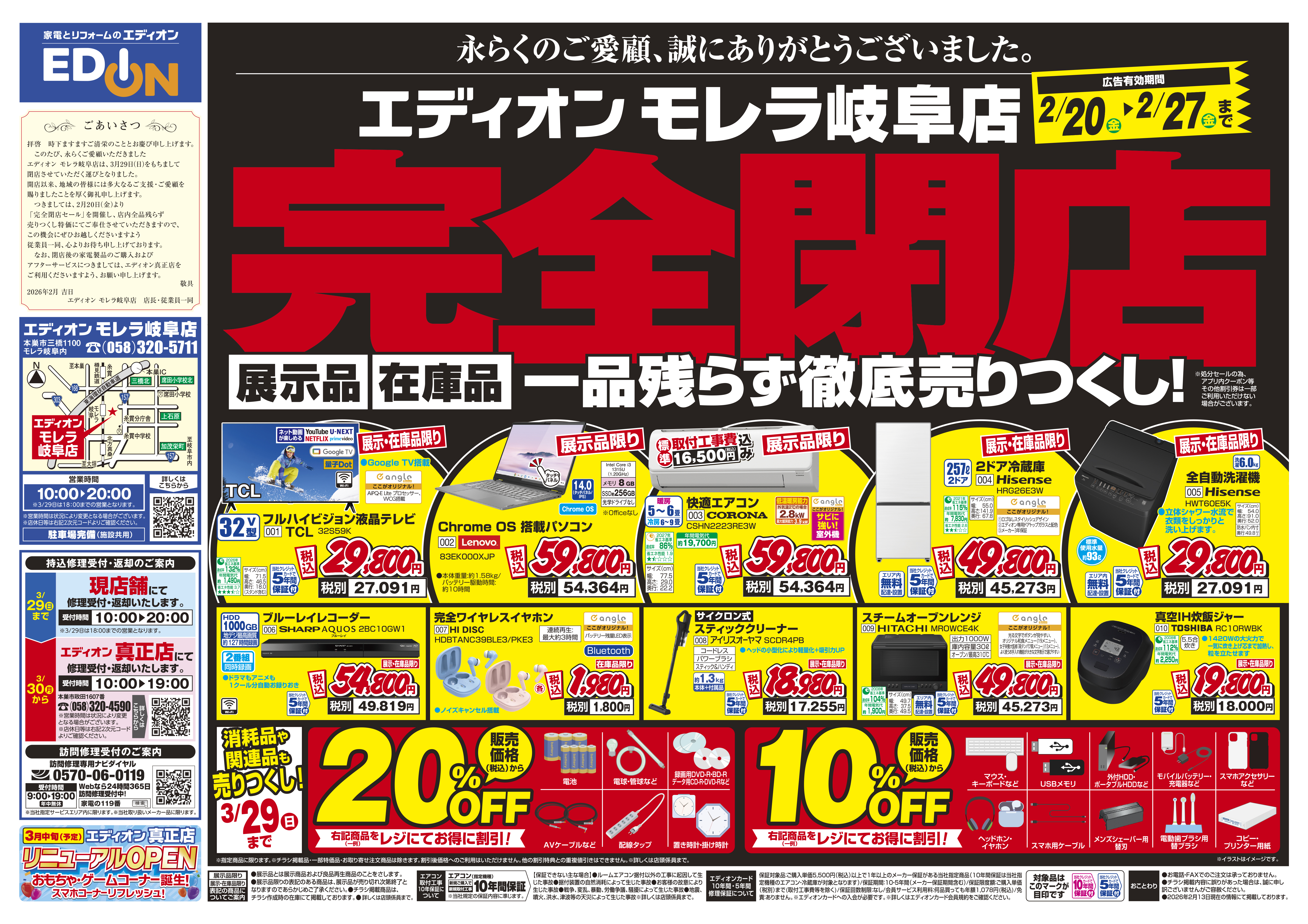 営業時間 営業時間はエディオンの店舗情報ページにて最新情報をご確...