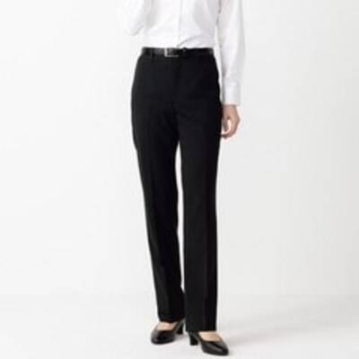 【レディース】【ビジネスから就活まで】洗える 360°キレイ 黒無地 ストレートパンツ セットアップ着用可