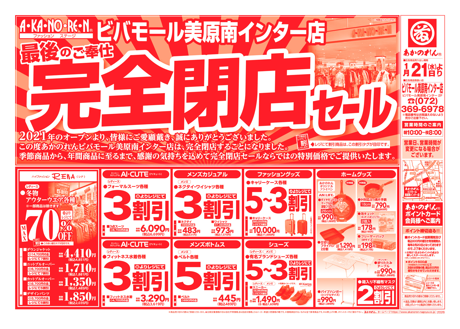 資材館 6:30~21:00 生活館 9:00~21:00