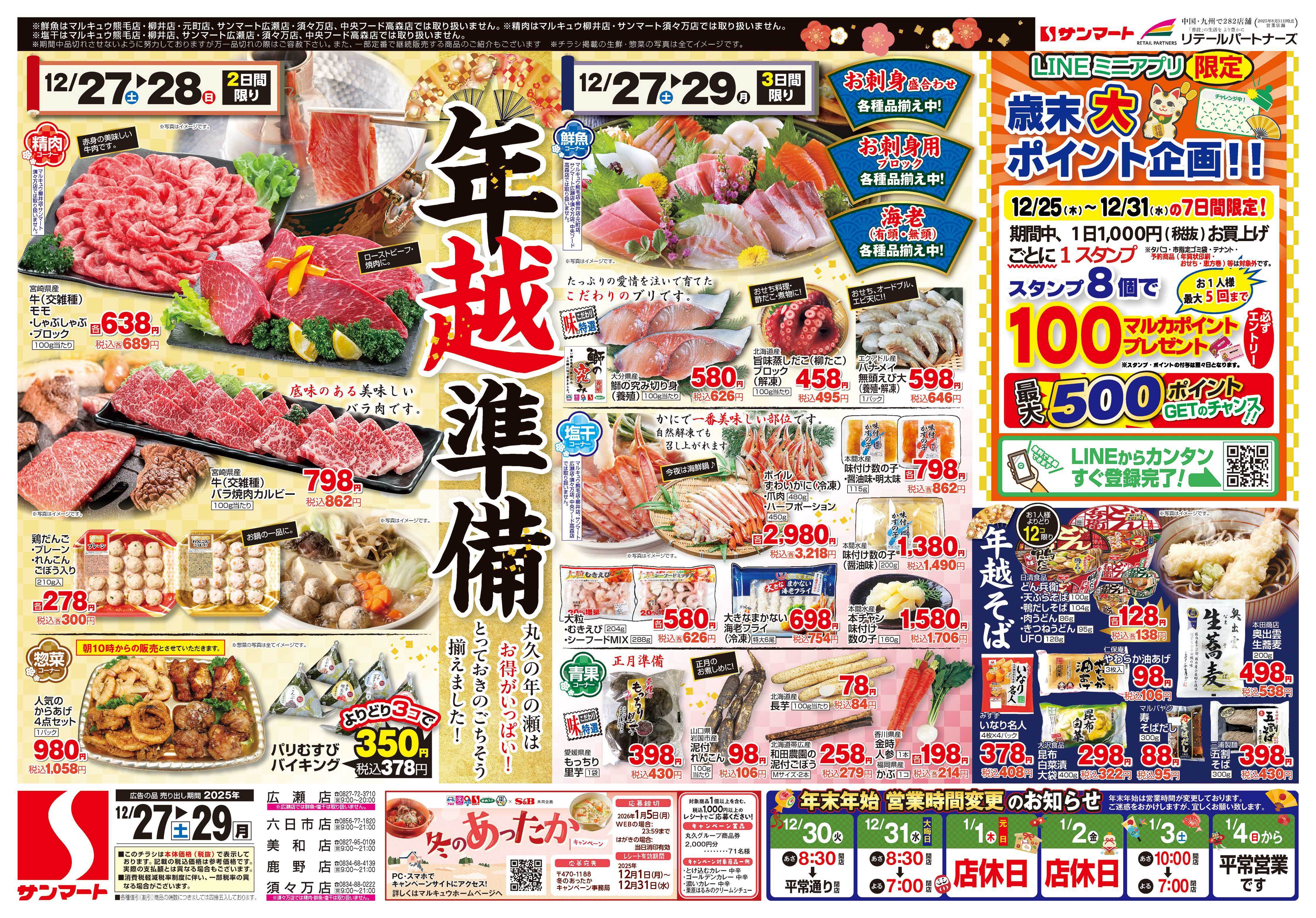 年末年始の期間中、営業時間が変更になっている可能性があります。詳しくはホームページ等をご確認ください。