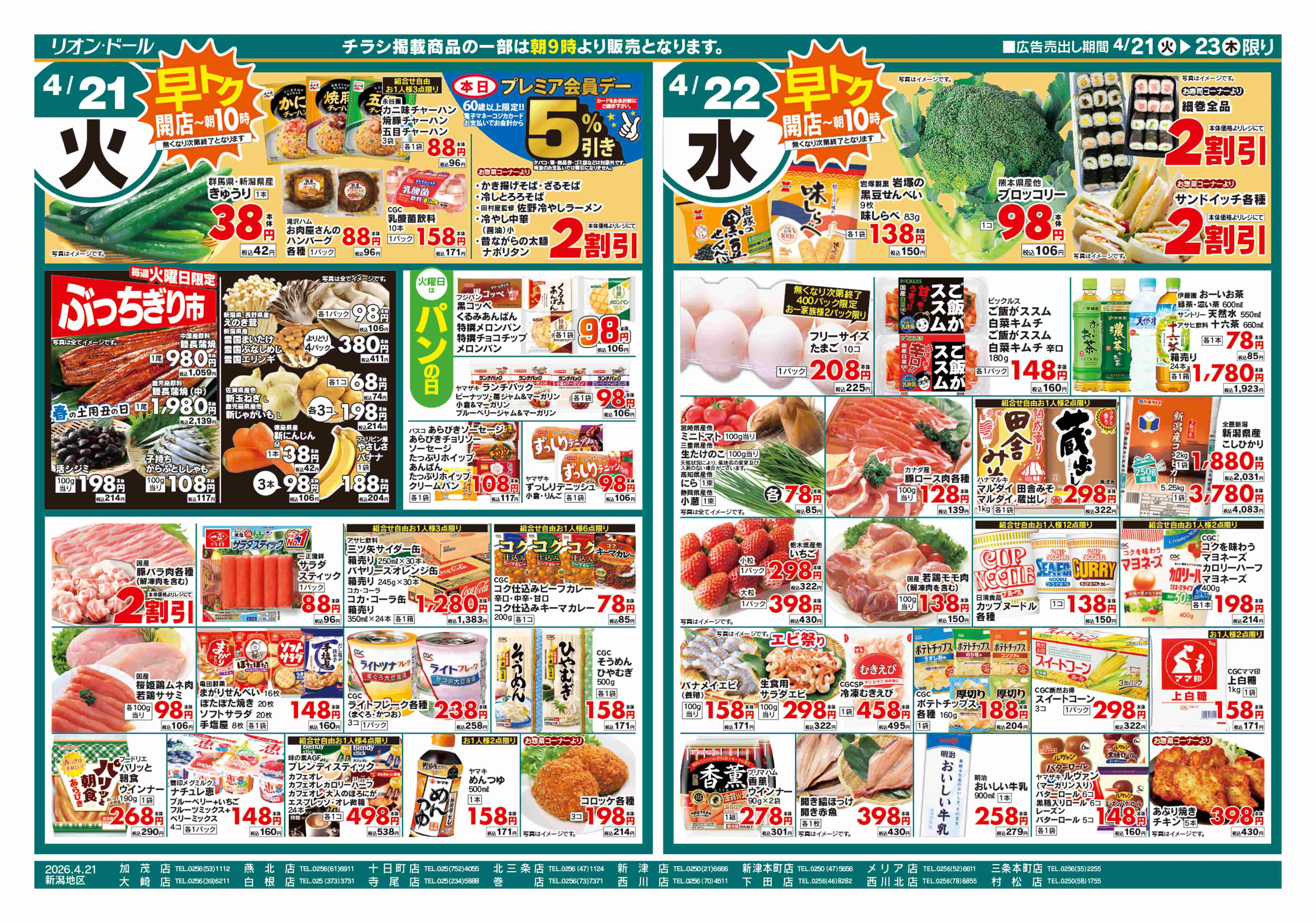 火曜98円セール/水曜日替わり/木曜ズバッと市/金曜まとめ得