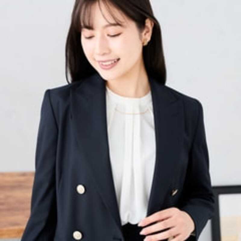 【レディース】【Oggiコラボ】ブライトツイルストレッチ ダブルジャケット 紺 セットアップ着用可