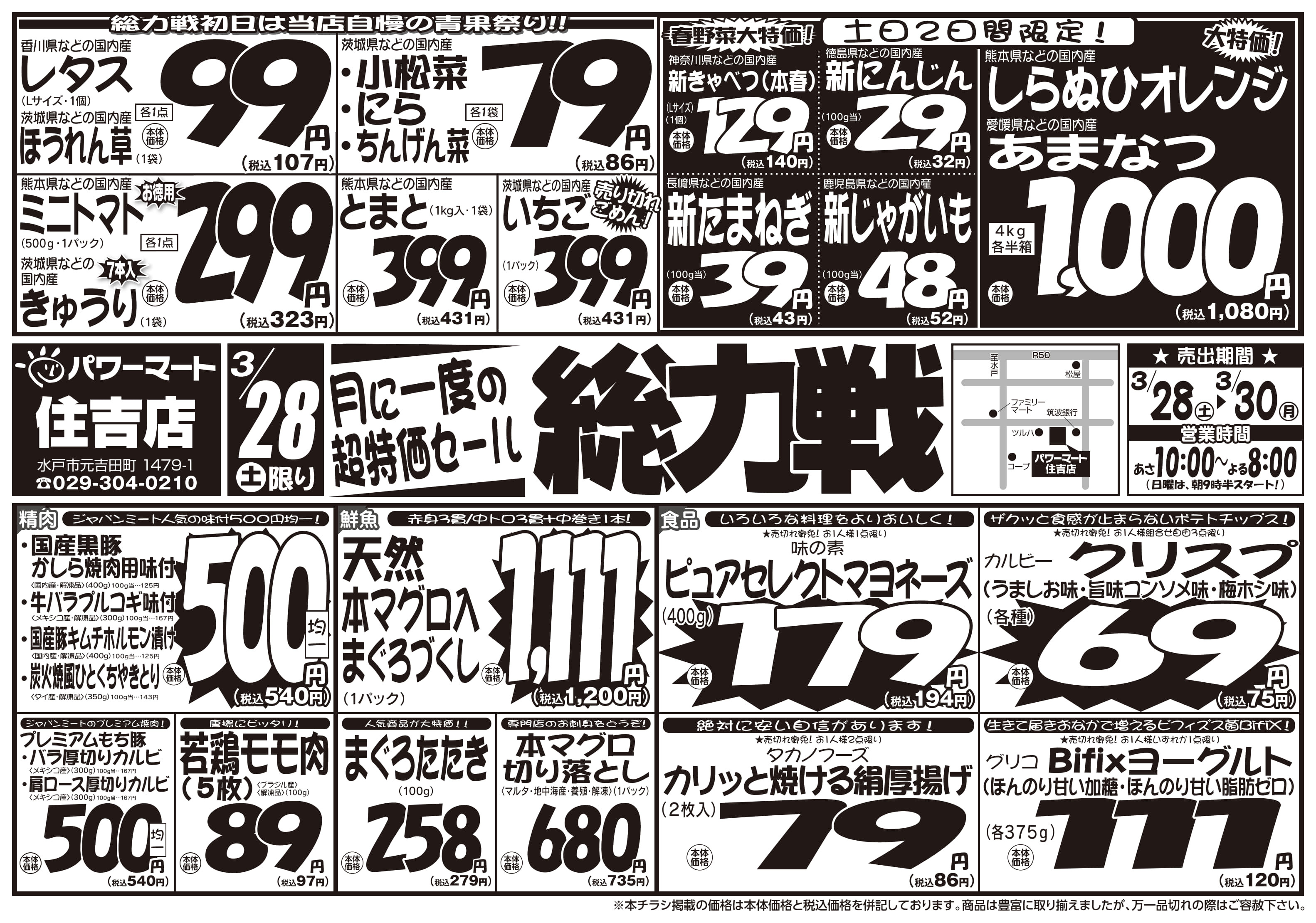 3/25号チラシ「※一部店舗では商品のお取り扱いのない場合がございます。」