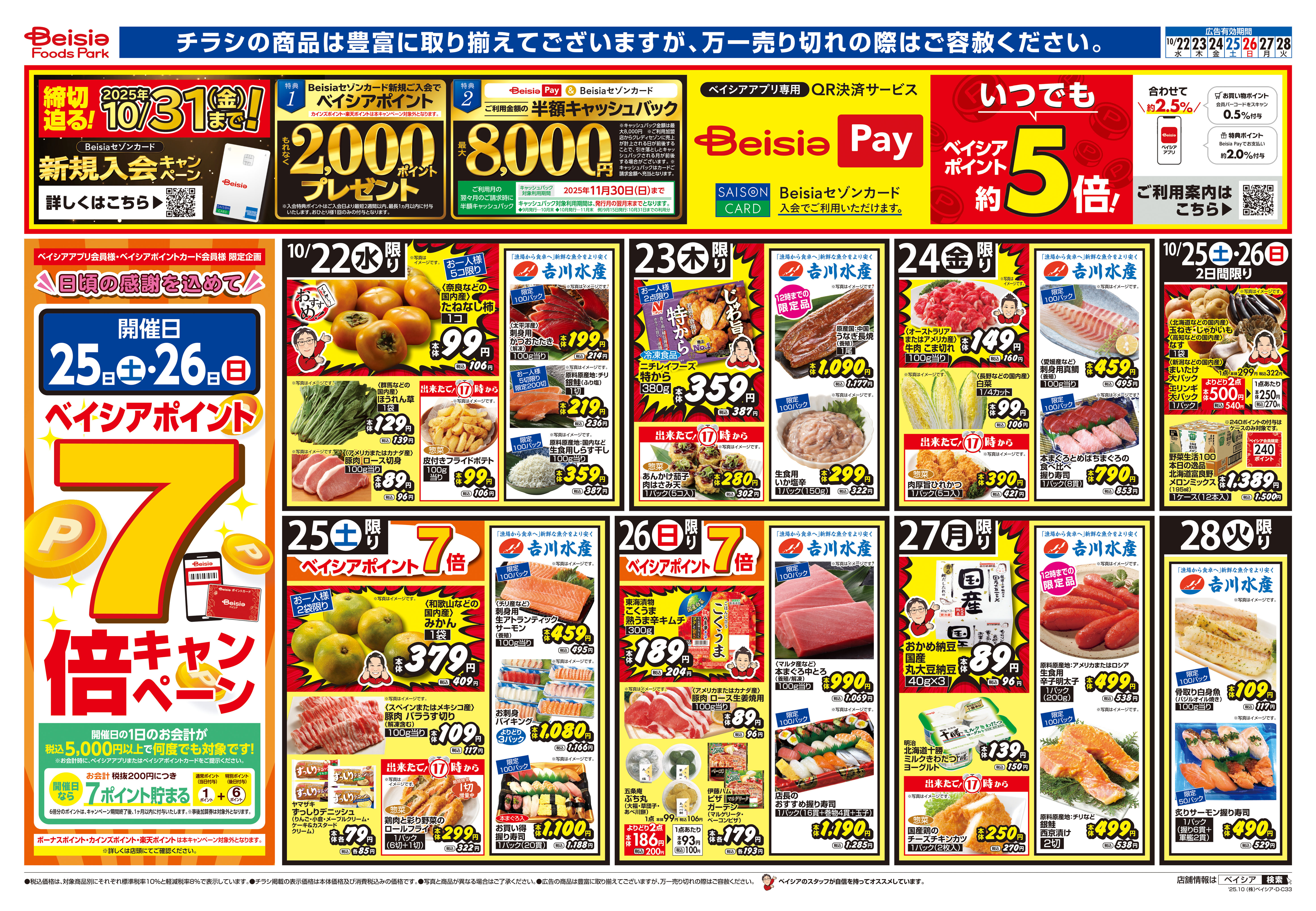 8:00~25:00 ※一時お休みさせていただく場合もございますので、予めご了承ください。 広告特売は10時から21時までとなります。 21時から翌日10時までは広告の価格と異なる場合がございます。