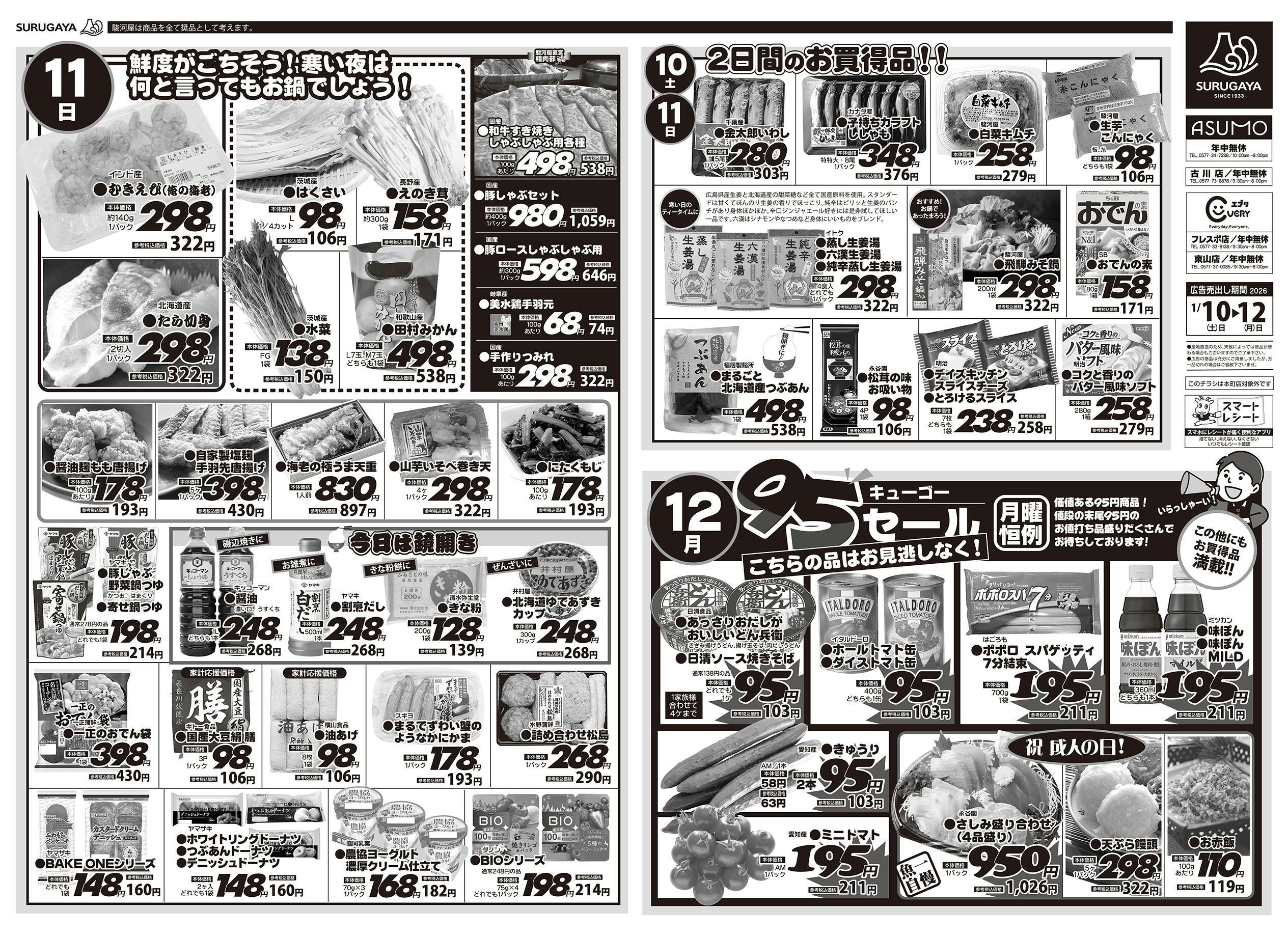 成人の日お祝いメニュー取り揃え/恵方巻受付中/冬のお買得品大集合
