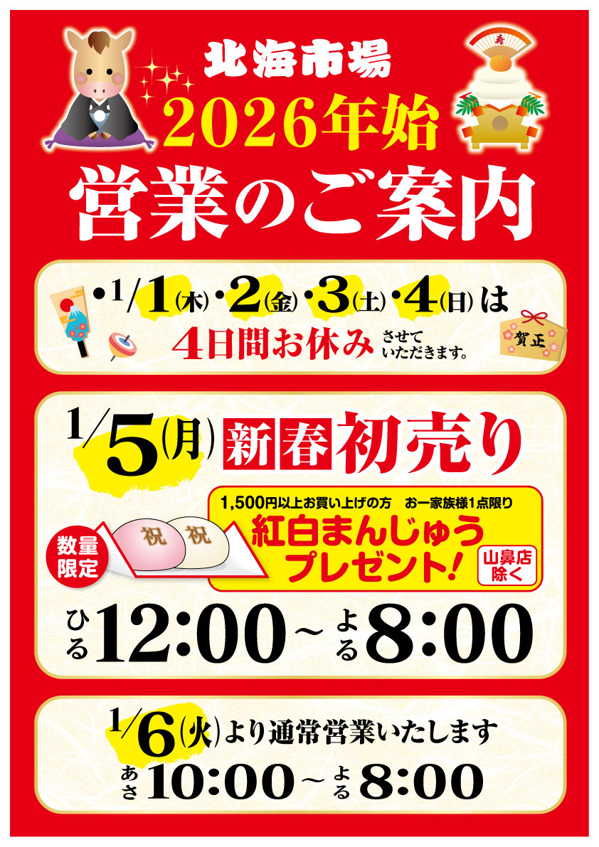 年末年始の期間中、営業時間が変更になっている可能性があります。詳しくはホームページ等をご確認ください。