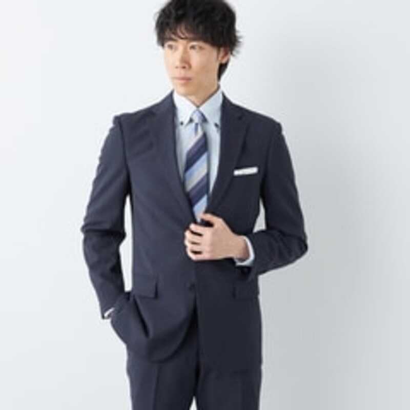 【メンズ】ストレッチ サステナブルスーツ 紺 織柄ストライプ JOURNAL WORKS スリム