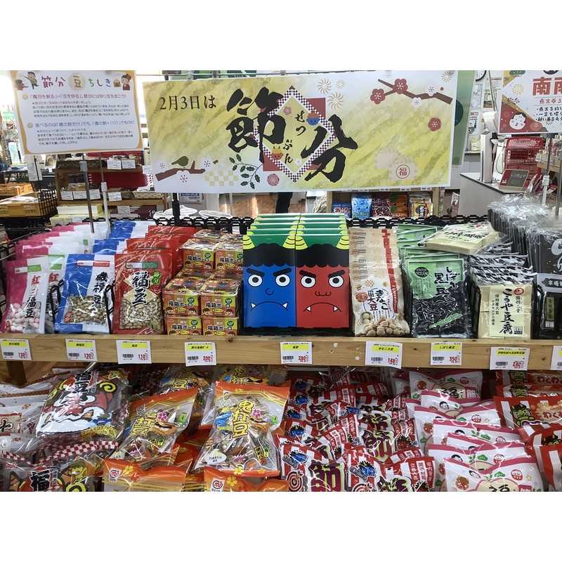節分コーナーにて節分商品各種販...