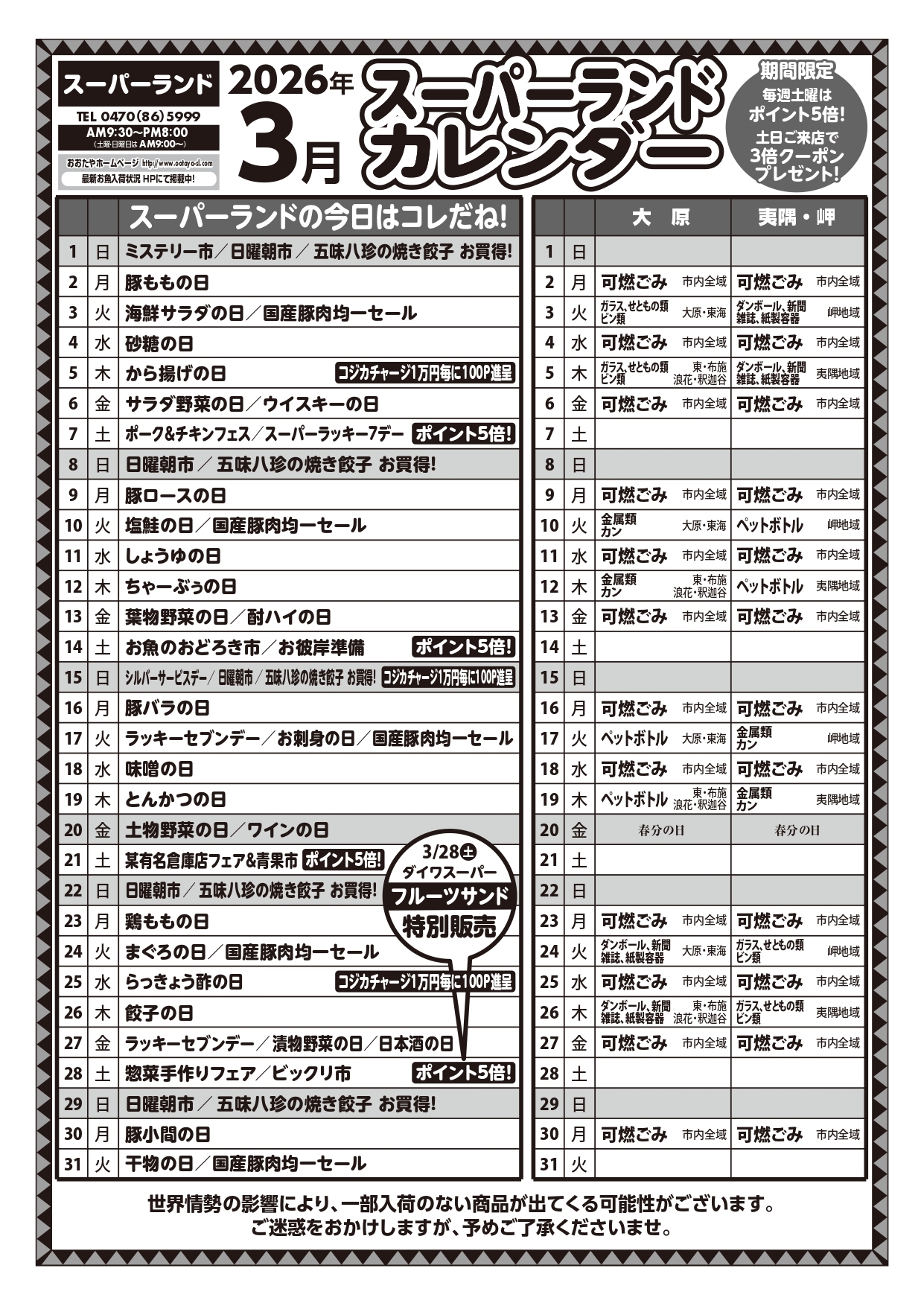 千葉大原店のチラシ