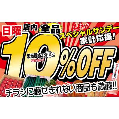 本日、日曜日、店内全品10%引...