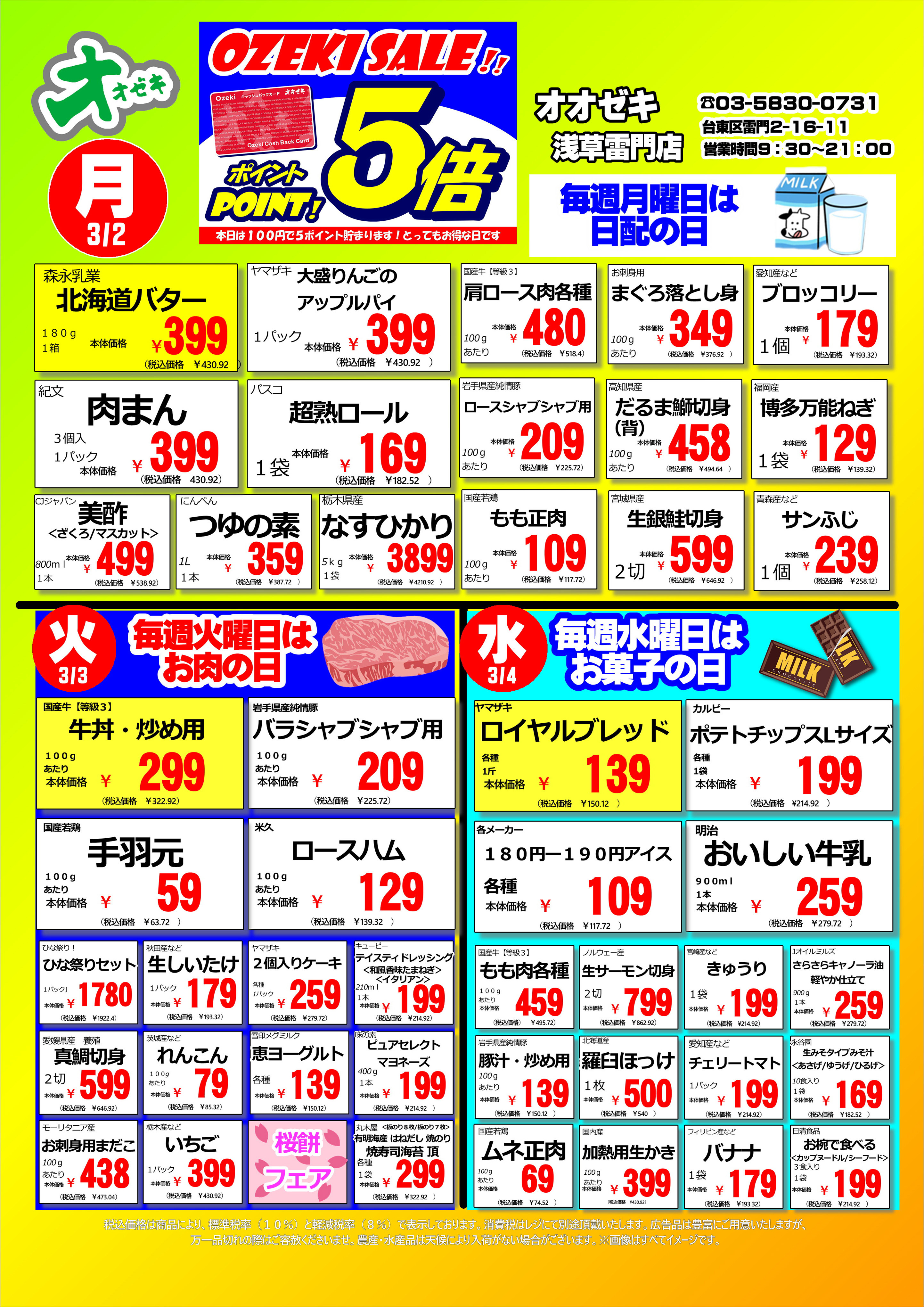 9:30~21:00 (隅田川花火大会開催日は、20:00閉店)