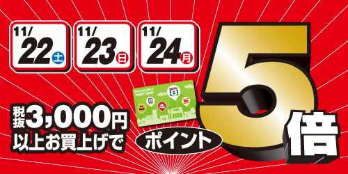 3日間ポイント5倍開催中!!