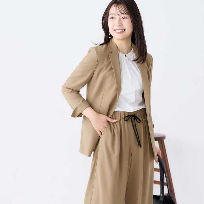 【レディース】ドレープストレッチ テーラードジャケット キャメル セットアップ着用可