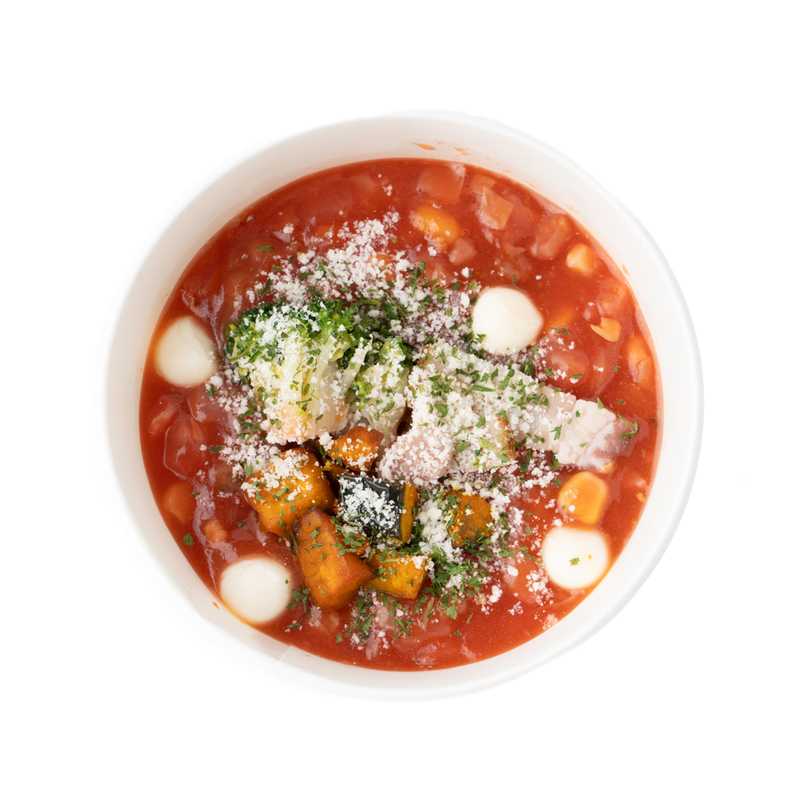 ジェノベーゼソースを加えた北海道産トマトジュースがベースのスープです。