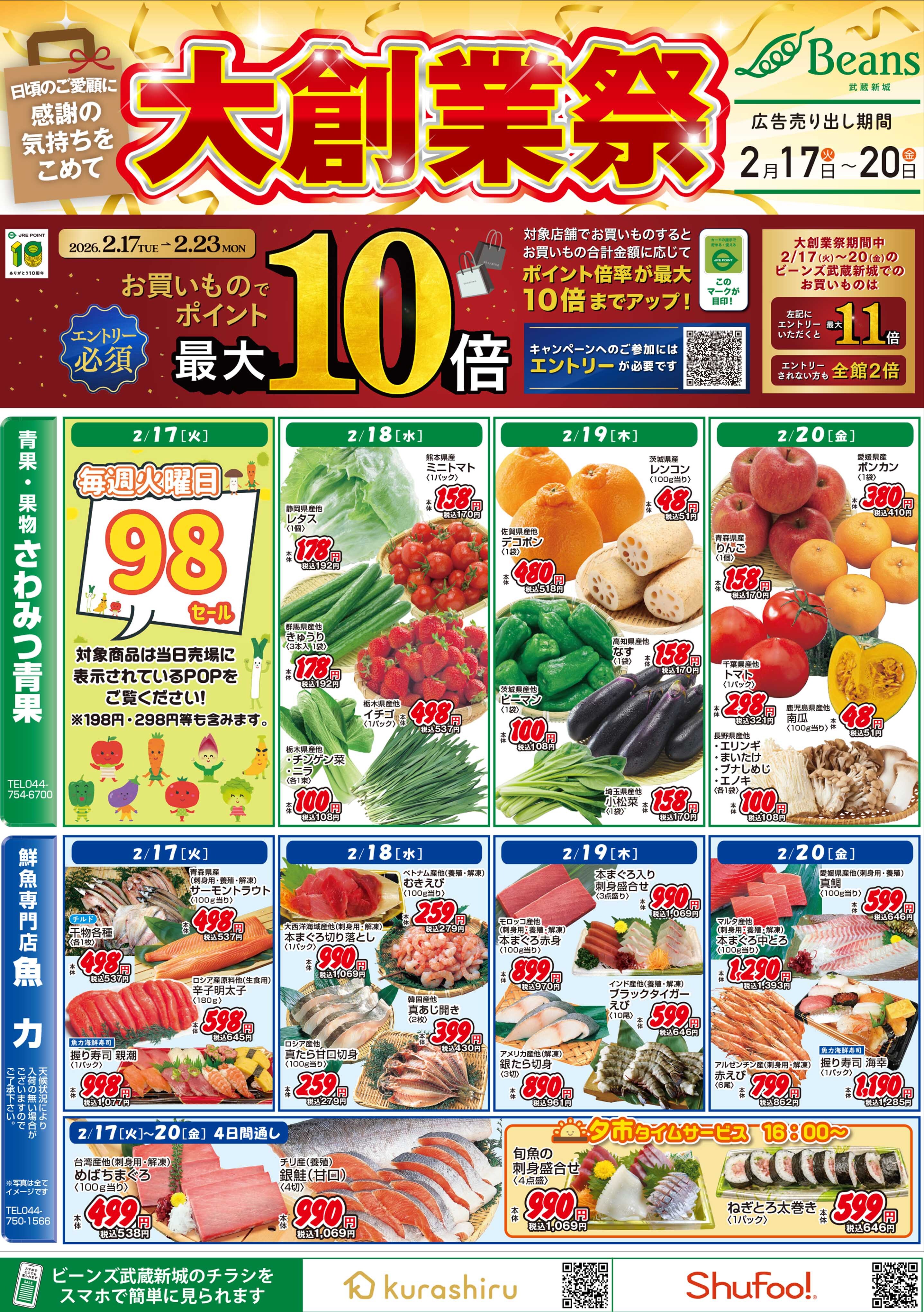 10:00~21:00 特売イベント、年末の営業時間変更あり
