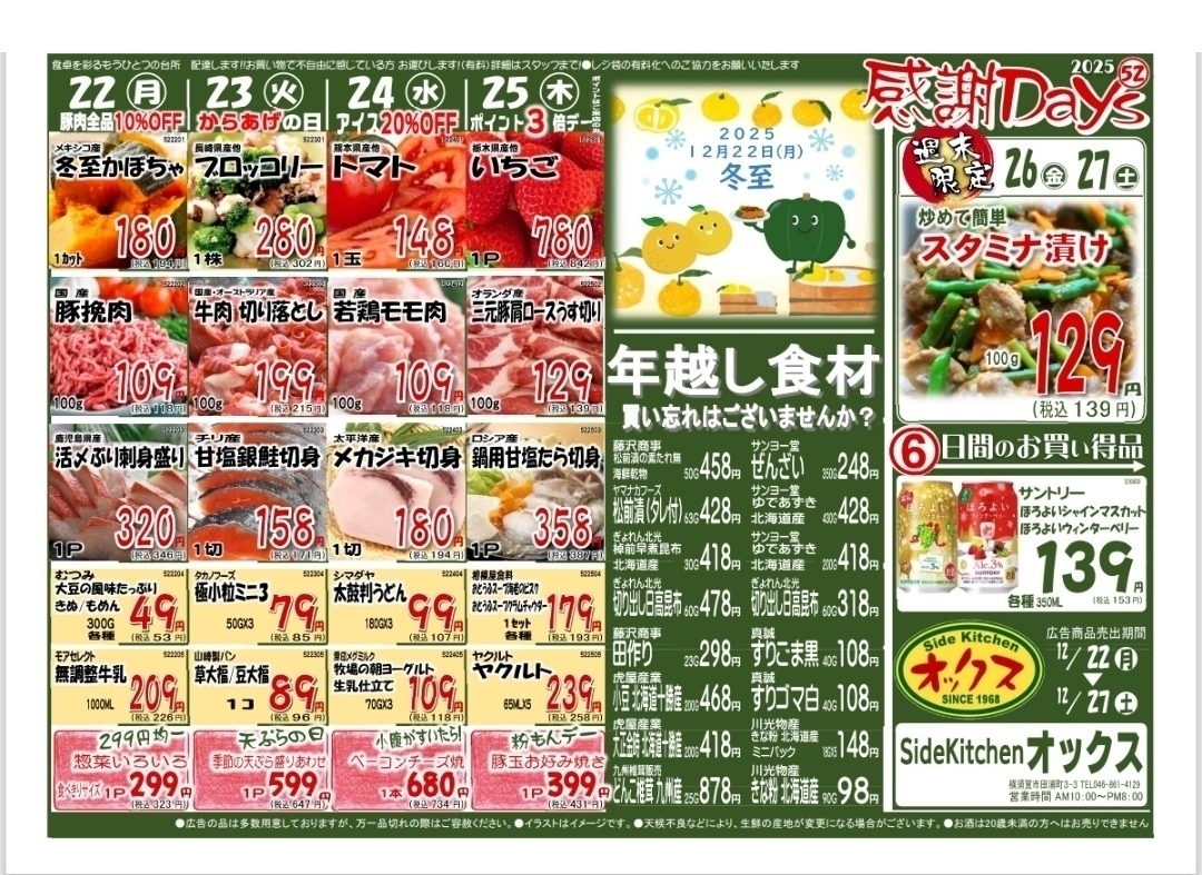 年末年始の期間中、営業時間が変更になっている可能性があります。詳しくはホームページ等をご確認ください。