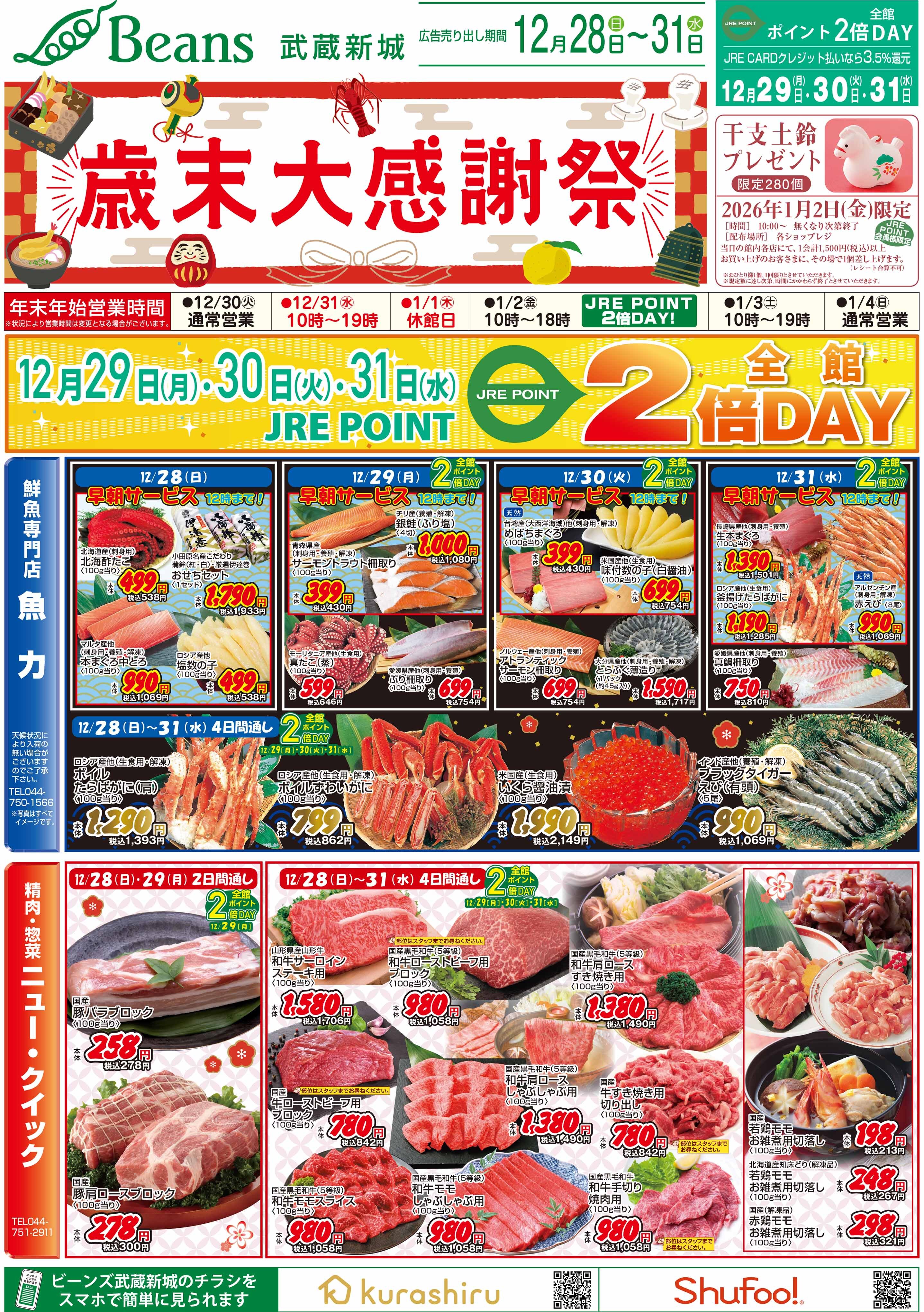 年末年始の期間中、営業時間が変更になっている可能性があります。詳しくはホームページ等をご確認ください。